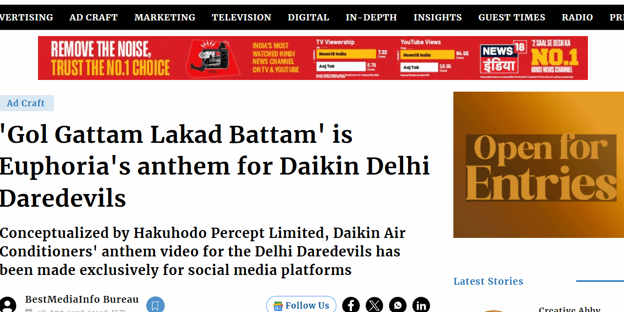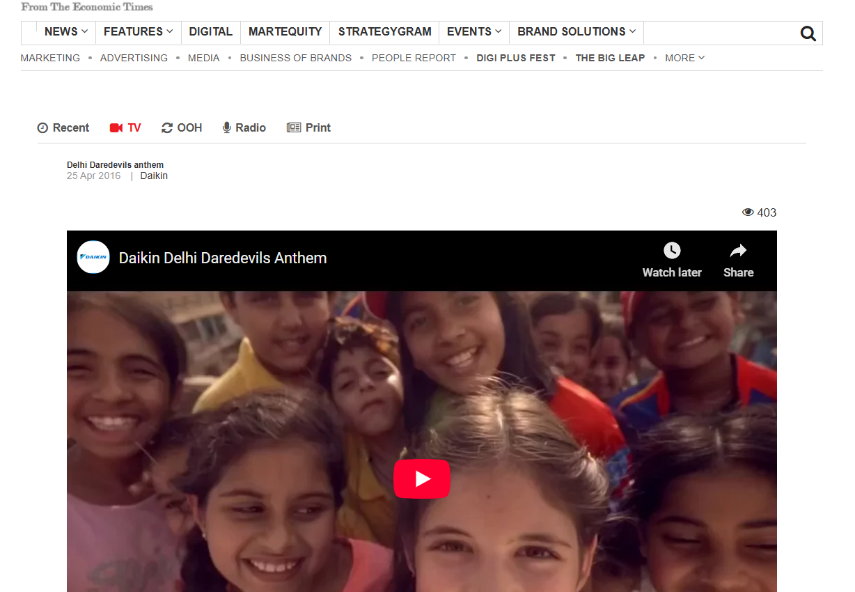 04 Apr, 2016 Sports Marketing Gol Gattam Lakad Battam’ is Euphoria’s anthem for Daikin Delhi Daredevils